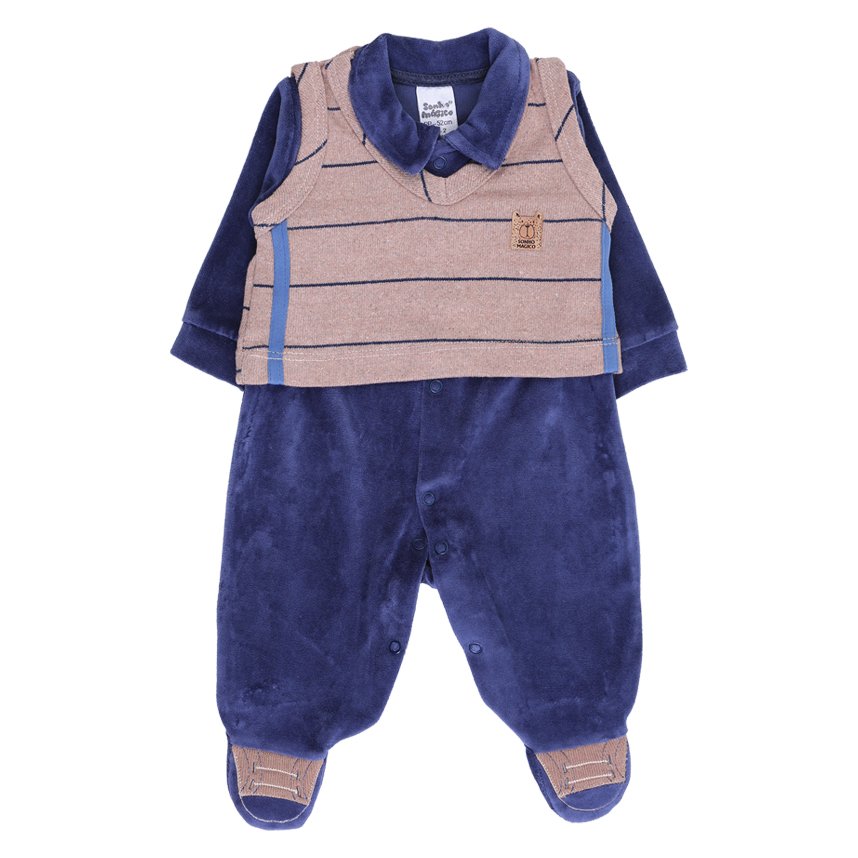 O modelo conta com abertura frontal por botões de pressão, permitindo trocas rápidas e fáceis. O pezinho fechado garante aconchego e mantém o bebê aquecido durante todo o uso.