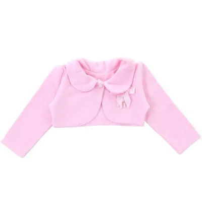 Bolero Din Don Manga Longa Gola Frufru Bordado Com Laço